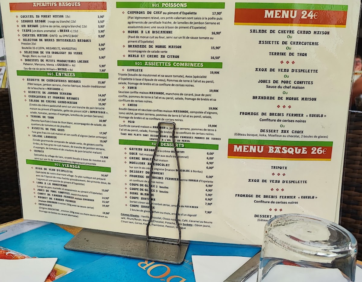 Customer favorites include the Axoa de Veau D’Esplette, a hearty veal dish, and the Joues de Porc Confites, featuring succulent pork cheeks that are slow-cooked to perfection. The Brandade De Morue Maison brings a twist to classic comfort food, reminiscent of shepherd's pie but with the delightful taste of cod. Each bite is a journey through the vibrant flavors characteristic of the Basque region.