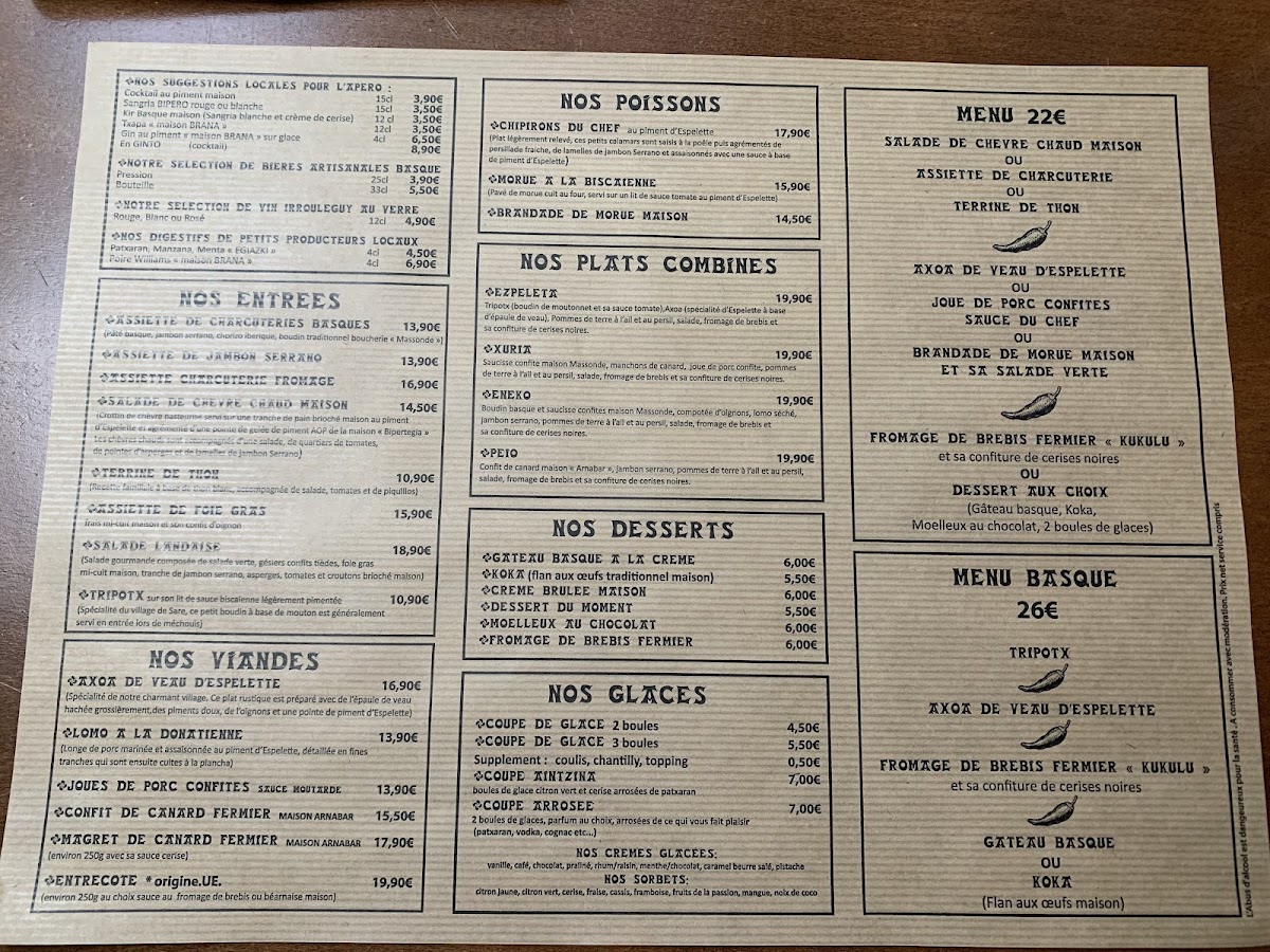 Welcome to Aintzina, a delightful culinary gem nestled in the heart of Espelette, France. This charming eatery showcases the rich flavors of Basque cuisine, offering a variety of traditional dishes that are both authentic and tantalizing. Renowned for its lunch service, Aintzina is a convenient stop year-round for locals and travelers alike.